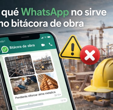 Descubre por qué la bitácora de obra WhatsApp genera muchos riesgos, pérdida de información y falta de control en proyectos de construcción y supervisión diaria.